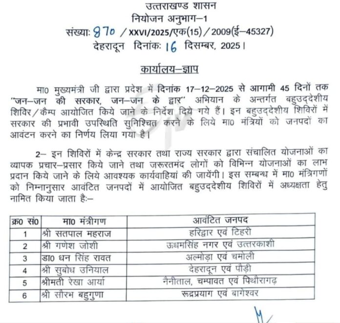 उत्तराखंड में धामी सरकार के मंत्री अब धरातल पर जनता के बीच दिखाई देंगे। ऐसा मुख्यमंत्री के उन निर्देशों के बाद संभव होगा, जिसमें सभी मंत्रियों को 17 दिसम्बर से शुरू हुए अभियान से जोड़ा गया है।