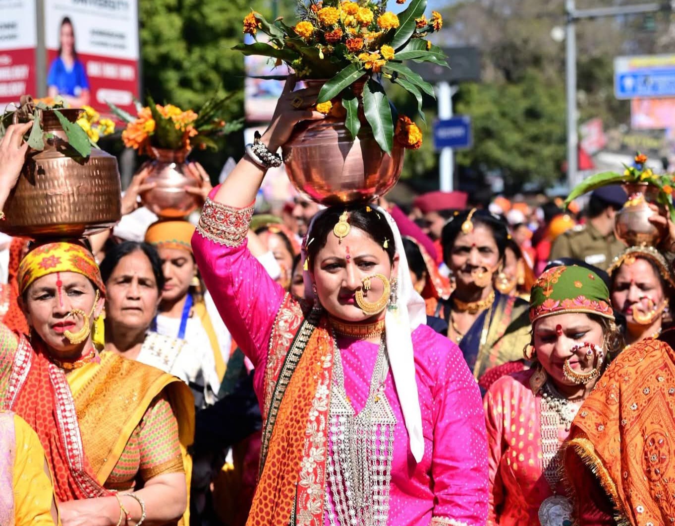 शोभायात्रा में पूज्य देवी-देवताओं की डोलियों ने श्रद्धा का वातावरण बनाया, वहीं जौनसारी, गढ़वाली, कुमाऊंनी, गोर्खाली एवं पंजाबी लोक कलाकारों ने अपनी पारंपरिक वेशभूषा में मनोहारी प्रस्तुतियाँ देकर शोभायात्रा को जीवंत कर दिया। ढोल-नगाड़ों की गूंज और लोकनृत्यों के साथ चलती यह यात्रा उत्तराखंड की समृद्ध लोकसंस्कृति और परंपराओं का सजीव परिचय बनी।