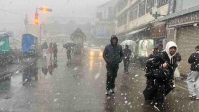 उत्तराखंड के पहाड़ों में मौसम ने शुक्रवार सुबह अचानक करवट ले ली। सुबह के शुरुआती घंटों में मसूरी समेत कई ऊंचाई वाले इलाकों में सीजन की पहली बर्फबारी देखने को मिली। हल्की बारिश के बाद जैसे ही तापमान गिरा, मसूरी की पहाड़ियां, सड़कें और देवदार के पेड़ बर्फ की सफेद चादर में लिपट गए। इसी के साथ आज मसूरी सोशल मीडिया पर ट्रेंड करता दिखा। वहीं देहरादून और अन्य निचले इलाकों में दिन भर झमाझम बारिश पड़ती रही।