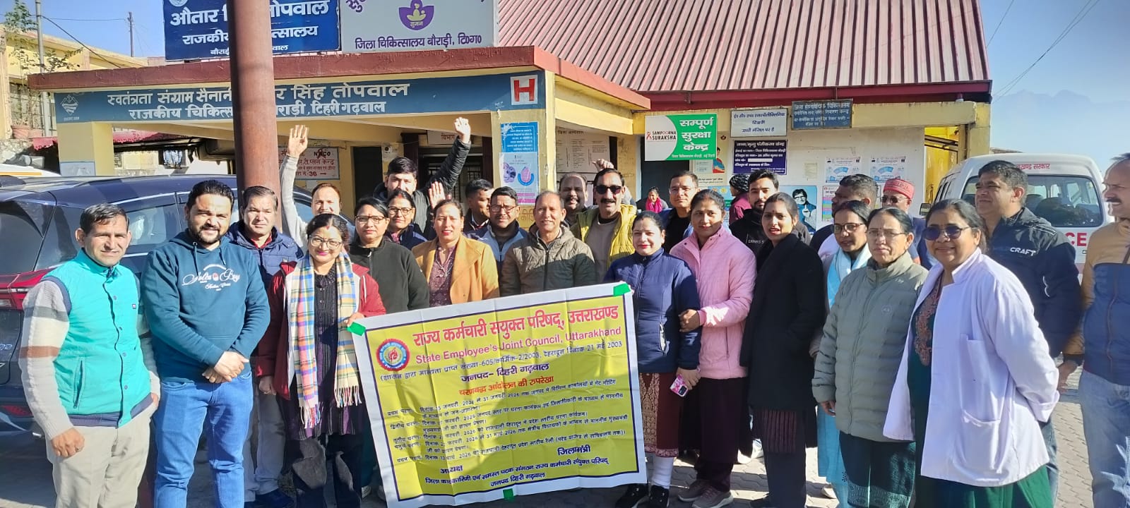 राज्य कर्मचारी संयुक्त परिषद उत्तराखंड के प्रांतीय कार्यकारिणी के आह्वान पर 18 सूत्रीय मांगों के लिए चरणबद्ध आंदोलन के क्रम में आज राज्य कर्मचारी संयुक्त परिषद टिहरी गढ़वाल की कार्यकारिणी द्वारा अध्यक्ष भगवान सिंह राणा की अध्यक्षता एवं जिला मंत्री जयवीर सिंह रांगड , मुख्य सलाहकार प्रेम लाल शाह एवं श्रीमती सुधा पाण्डेय मातृ एवं शिशु कल्याण के संयुक्त नेतृत्व में जिला चिकित्सालय कार्यालय परिसर बौराडी नई टिहरी में गेट मीटिंग की गई।