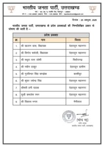 Uttarakhand: भाजपा में नौ प्रवक्ता नियुक्त, विधायक खजानदास, विनोद चमोली, हनी पाठक सहित इन्हें मिली जिम्मेदारी