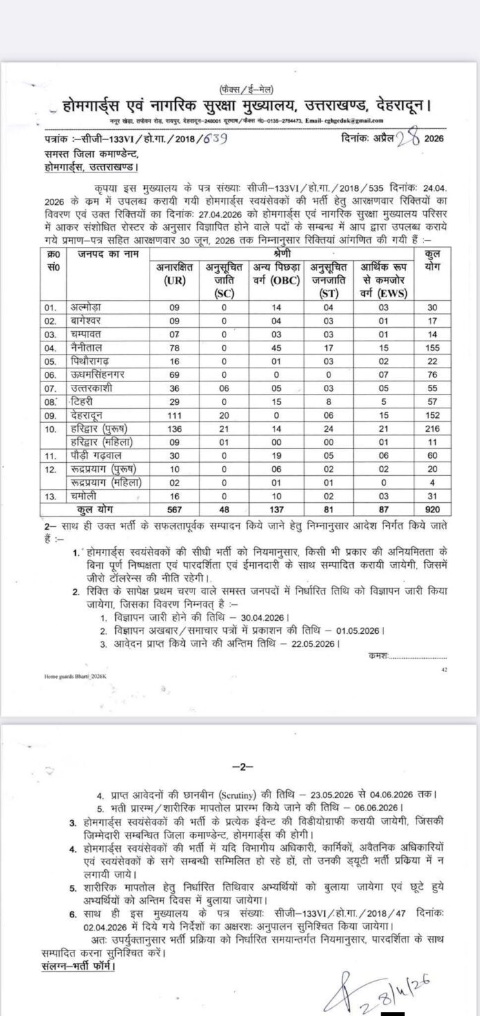Homeहमारा उत्तराखण्डउत्तराखण्ड: होमगार्ड्स स्वयं सेवक की भर्ती हेतु विज्ञप्ति जारी हमारा उत्तराखण्ड उत्तराखण्ड: होमगार्ड्स स्वयं सेवक की भर्ती हेतु विज्ञप्ति जारी By LOKPAKSH April 29, 2026 0 32 Share FacebookXPinterestWhatsApp TagsNotification issuedUttarakhand Home Guards Volunteer Recruitment Share FacebookXPinterestWhatsApp Previous articleहोटल रूप में शहरी अमीरों के होमस्टे पर चला डीएम का डंडा, 17 होमस्टे का पंजीकरण निरस्तNext articleसीएम धामी वन विकास निगम के “रजत जयंती समारोह” में बोले, कुमाऊं में भी खुलेगा वन निगम का कार्यालय LOKPAKSH RELATED ARTICLES हमारा उत्तराखण्ड सीएम धामी वन विकास निगम के “रजत जयंती समारोह” में बोले, कुमाऊं में भी खुलेगा वन निगम का कार्यालय April 29, 2026 हमारा उत्तराखण्ड हीट वेव का कहर: स्वास्थ्य विभाग अलर्ट, डॉक्टरों ने जारी की एडवाइजरी April 28, 2026 हमारा उत्तराखण्ड Dehradun: रोमियो लेन बार प्रकरण, एनएसयूआई का पुलिस हेडक्वार्टर के बाहर प्रदर्शन, आईजी गोबैक के नारे लगाए April 28, 2026 Leave a reply Cancel reply Comment: Please enter your comment! Name: Please enter your name here Email: You have entered an incorrect email address! Please enter your email address here Website: Save my name, email, and website in this browser for the next time I comment. Δ - Advertisment - Most Popular सीएम धामी वन विकास निगम के “रजत जयंती समारोह” में बोले, कुमाऊं में भी खुलेगा वन निगम का कार्यालय April 29, 2026 होटल रूप में शहरी अमीरों के होमस्टे पर चला डीएम का डंडा, 17 होमस्टे का पंजीकरण निरस्त April 29, 2026 Haridwar: बुद्ध पूर्णिमा स्नान पर्व के लिए यातायात रूट डायवर्जन प्लान जारी, भारी वाहनों का प्रवेश रहेगा बंद April 29, 2026 हीट वेव का कहर: स्वास्थ्य विभाग अलर्ट, डॉक्टरों ने जारी की एडवाइजरी April 28, 2026 सोनप्रयाग से केदारनाथ तक बिजली लाइन को यूपीसीएल बोर्ड की मंजूरी, 45 करोड़ होंगे खर्च April 28, 2026 Dehradun: रोमियो लेन बार प्रकरण, एनएसयूआई का पुलिस हेडक्वार्टर के बाहर प्रदर्शन, आईजी गोबैक के नारे लगाए April 28, 2026 विधानसभा विशेष सत्र: मुख्यमंत्री धामी बोले, महिला सशक्तिकरण के प्रयासों पर न हो राजनीति April 28, 2026 Uttarakhand Assembly: महिला आरक्षण के मुद्दे पर गरमाया सदन, बाहर प्रदर्शन, कई कांग्रेस नेता गिरफ्तार April 28, 2026 Badrinath Highway: तोताघाटी के पास दिल्ली के श्रद्धालुओं की कार खाई में गिरी, केदारनाथ दर्शन कर लौट रहे थे April 28, 2026 Uttarakhand Weather: अब गर्मी से राहत के आसार, आज कई जिलों में बारिश, आंधी और ओलावृष्टि का अलर्ट April 28, 2026 Load more