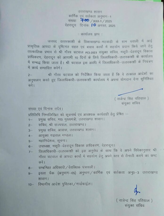 Homeहमारा उत्तराखण्डउत्तराखंड: इस PCS अधिकारी को किया डीएम कार्यालय अटैच हमारा उत्तराखण्ड उत्तराखंड: इस PCS अधिकारी को किया डीएम कार्यालय अटैच By LOKPAKSH August 10, 2025 0 145 Share FacebookTwitterPinterestWhatsApp Tagsthis PCS officer attached to DM officeuttarakhand Share FacebookTwitterPinterestWhatsApp Previous articleUttarkashi Dharali Cloudburst: धराली से लौटे कांग्रेस प्रदेश अध्यक्ष माहरा, प्रेस कांफ्रेंस में बताए हालातNext articleधराली आपदा से फंसे 36 लोगों को आज वायु सेना के विमान से पहुंचाया जौलीग्रांट LOKPAKSH RELATED ARTICLES हमारा उत्तराखण्ड उत्तराखंड आने वाले दूसरे राज्यों के वाहनों से वसूला जाएगा ग्रीन टैक्स, दिसंबर से होगी शुरुआत October 26, 2025 हमारा उत्तराखण्ड Uttarakhand Weather: उत्तराखंड में चटख धूप से कम हुई ठंड, सप्ताह भर ऐसा रहेगा मौसम October 26, 2025 हमारा उत्तराखण्ड Chhath Puja 2025: नहाय खाय के साथ आज से शुरू हुआ महापर्व छठ, दून में 23 से अधिक घाटों पर पूजा October 25, 2025 Leave a reply Cancel reply Comment: Please enter your comment! Name: Please enter your name here Email: You have entered an incorrect email address! Please enter your email address here Website: Save my name, email, and website in this browser for the next time I comment. Δ - Advertisment - Most Popular छेनागाड आपदा: मलबे में मिलीं पांच मजूदर की लाशें, नौ में से सात शव बरामद October 26, 2025 उत्तराखंड आने वाले दूसरे राज्यों के वाहनों से वसूला जाएगा ग्रीन टैक्स, दिसंबर से होगी शुरुआत October 26, 2025 Uttarakhand Weather: उत्तराखंड में चटख धूप से कम हुई ठंड, सप्ताह भर ऐसा रहेगा मौसम October 26, 2025 वन मंत्री उनियाल ने किया स्व. गौरा देवी की जनशताब्दी पर ‘गौरा देवी विशेष डाक टिकट’ का विमोचन October 25, 2025 Chhath Puja 2025: नहाय खाय के साथ आज से शुरू हुआ महापर्व छठ, दून में 23 से अधिक घाटों पर पूजा October 25, 2025 12 लाख की चरस के साथ हल्द्वानी क्षेत्र से एक नशा तस्कर गिरफ्तार October 25, 2025 नर्सिंग पाठ्यक्रम संचालन हेतु एम्पावर्ड समिति की बैठक, मेडिकल एवं नर्सिंग कॉलेजों को कोर्स संचालन एवं सीट वृद्धि की संस्तुति October 24, 2025 सीएम धामी ने किया बनबसा में आधुनिक लैंड पोर्ट परियोजना का स्थलीय निरीक्षण October 24, 2025 उत्तराखंड: शिक्षा विभाग के इन अधिकारियों का हुआ प्रमोशन October 24, 2025 Uttarakhand: भाजपा में नौ प्रवक्ता नियुक्त, विधायक खजानदास, विनोद चमोली, हनी पाठक सहित इन्हें मिली जिम्मेदारी October 23, 2025 Load more