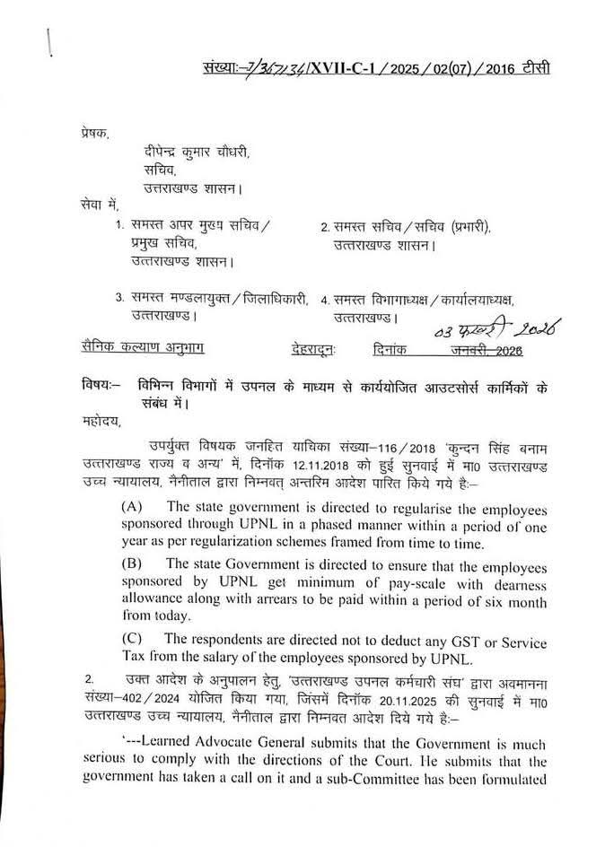 उपनल कर्मचारियों के लिए अच्छी खबर है। धामी सरकार ने समान कार्य समान वेतन का आदेश जारी कर दिया। दस साल की सेवा वाले आठ हजार से अधिक कर्मचारियों को इसका लाभ मिलेगा।